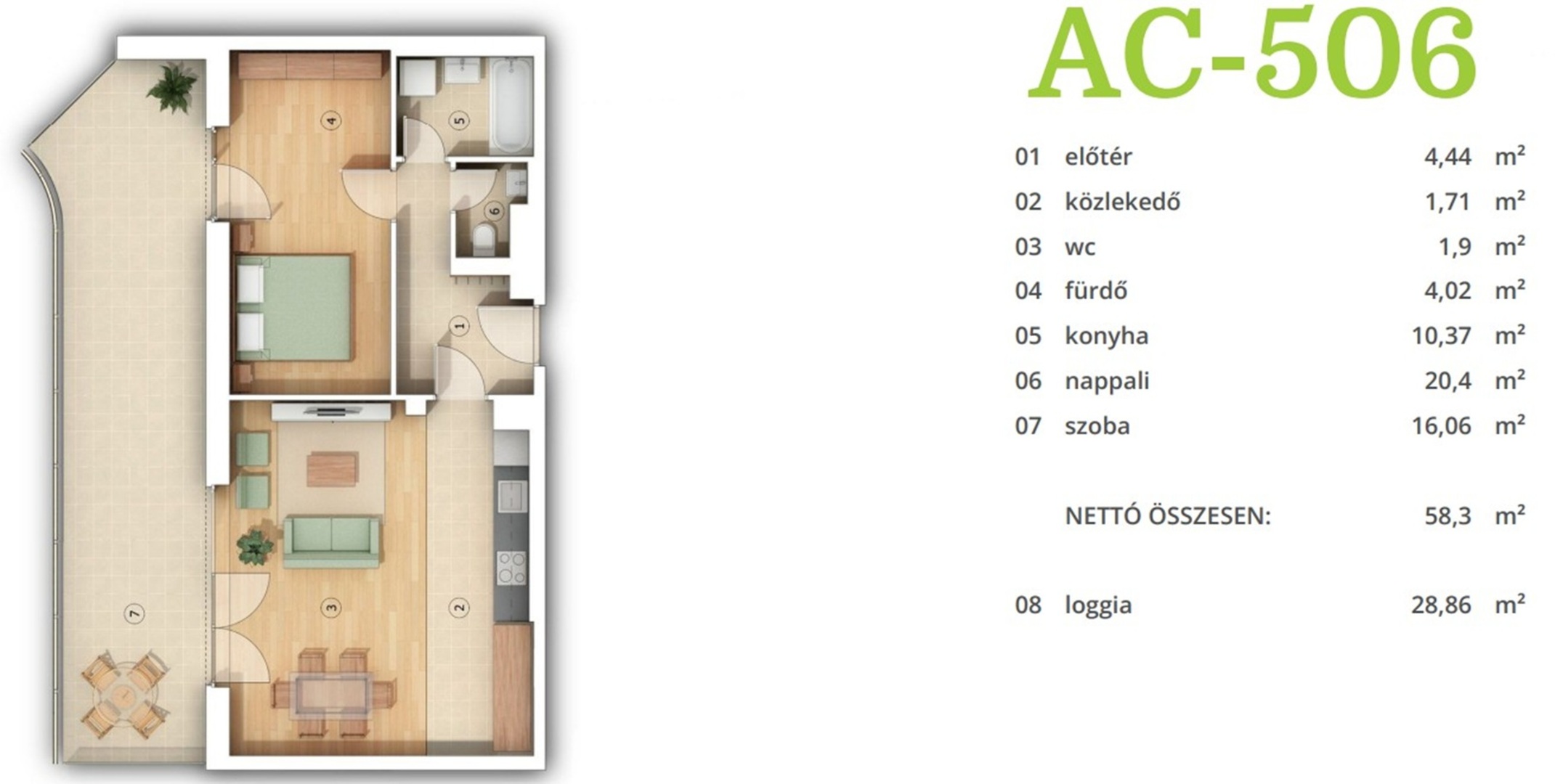A projekt lakásai modern alaprajzzal, jól szeparált funkciókkal és optimális helykihasználással készülnek.